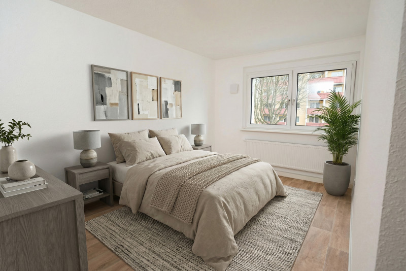 Top sanierte 3-Raum-Wohnung mit sonnigem Balkon & moderner Ausstattung zum Erstbezug In unserem umfassend modernisierten Wohnblock erwartet Sie ab Herbst 2025 diese lichtdurchflutete 3-Raum-Wohnung mit durchdachtem Grundriss und hochwertiger Ausstattung. Die gesamte Wohnanlage wurde energetisch auf den neuesten Stand gebracht – inklusive neuer Fassadendämmung, moderner Heizungsanlage mit Photovoltaik und neu angebauten Aufzügen. Die Wohnung im Überblick: • Großzügiges Wohnzimmer mit offener Küche – ideal für gemütliches Beisammensein • Sonniger Balkon mit Blick ins Grüne und Vertikalmarkisen • Frisch gefliestes Badezimmer mit Badewanne und moderner ebenerdiger Dusche • Ruhige Schlafzimmer und Kinderzimmer mit Rollläden • Praktischer Flur • kleiner Abstellraum an der Küche • Hochwertige Bodenbeläge und moderne Innenausstattung Außenbereich: Die neugestalteten Außenanlagen laden mit Spielplätzen und Sitzmöglichkeiten zum Verweilen ein – perfekt für Familien, Paare oder alle, die gerne im Grünen wohnen. Einziehen & Wohlfühlen: Für die kleine oder größere Familie – diese Wohnung bietet Komfort, moderne Technik und ein angenehmes Wohnumfeld. Voraussetzungen: Da dieses Sanierungsprojekt durch Fördermittel unterstützt wurde, ist für die Anmietung die Vorlage eines Wohnberechtigungsscheins erforderlich. Gern führen wir dazu eine Vorprüfung mit Ihnen durch.