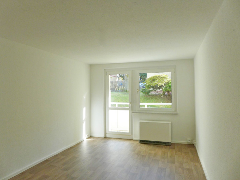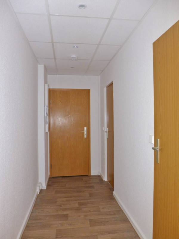 Die Wohnung verfügt über ein helles Wohnzimmer mit Balkon, ein vom Wohnzimmer aus erreichbares Schlafzimmer, ein Bad mit Wanne und Fenster, eine Küche mit Fenster und einen Flur. Zur Wohnung gehört ein Keller. Die Wohnung hat eine Elektro-Nachtspeicherheizung. Die angegebenen Nebenkosten beinhalten Kosten für den Nachtstrom, um die Wohnung mit fernbeheizten Wohnungen vergleichbar zu machen. Eine Einbauküche kann vom Vormieter abgekauft und übernommen werden.